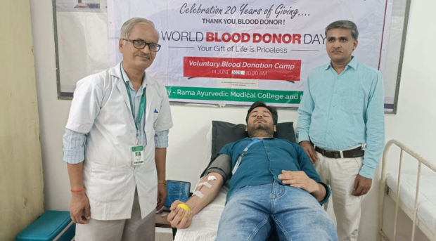 Blood Donation Program on the eve pf “World Blood Donor Day-2024” at Rama Ayurvedic Medical College & Hospital