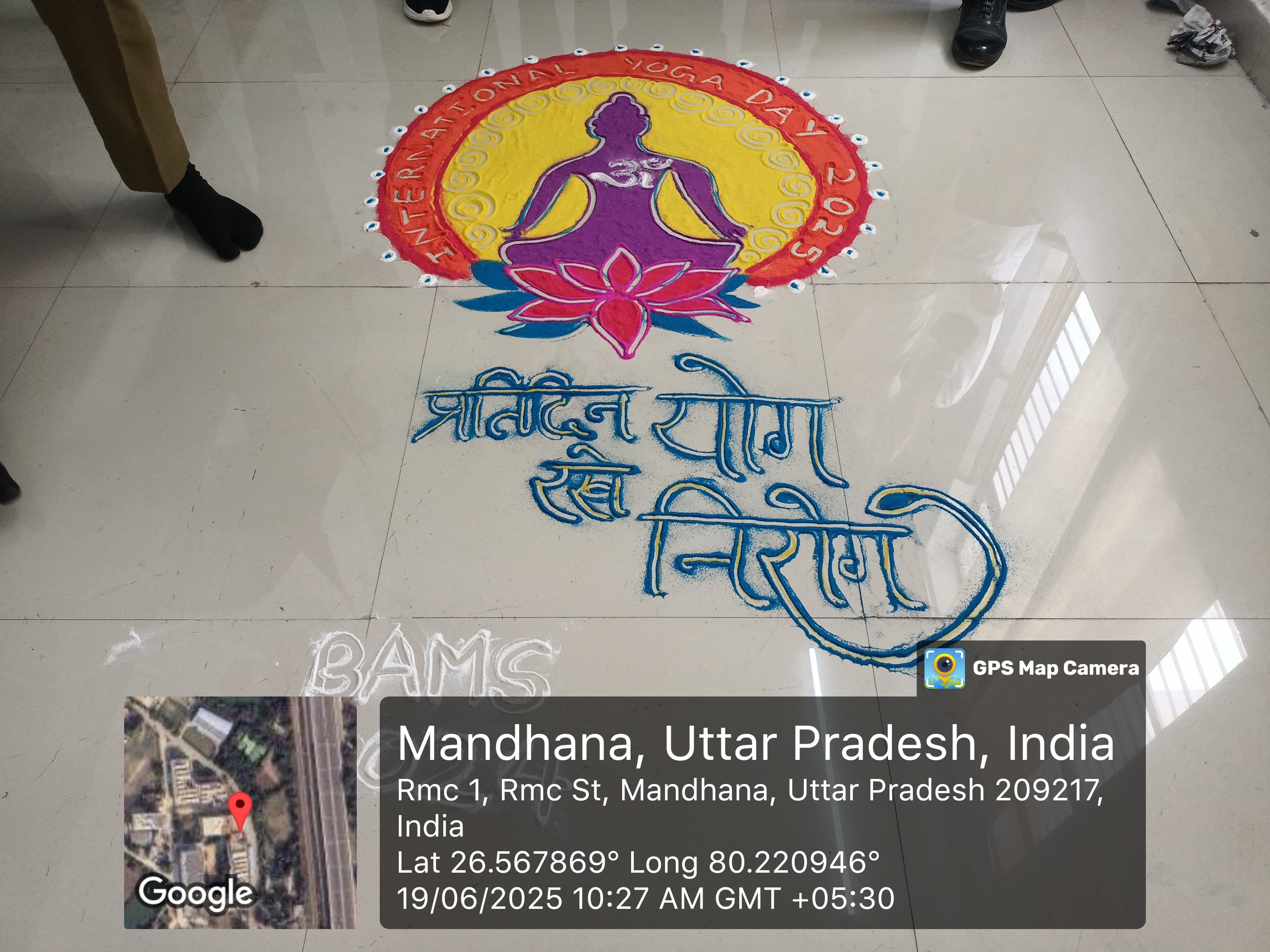 On 19th June 2025, Rama Ayurvedic Medical College & Hospital organized a Rangoli Competition for students of all BAMS batches as part of the pre-celebration activities for the 11th International Yoga Day. The theme of the competition centered around yoga, health, and wellness, allowing students to creatively express the essence and significance of yoga through traditional art.