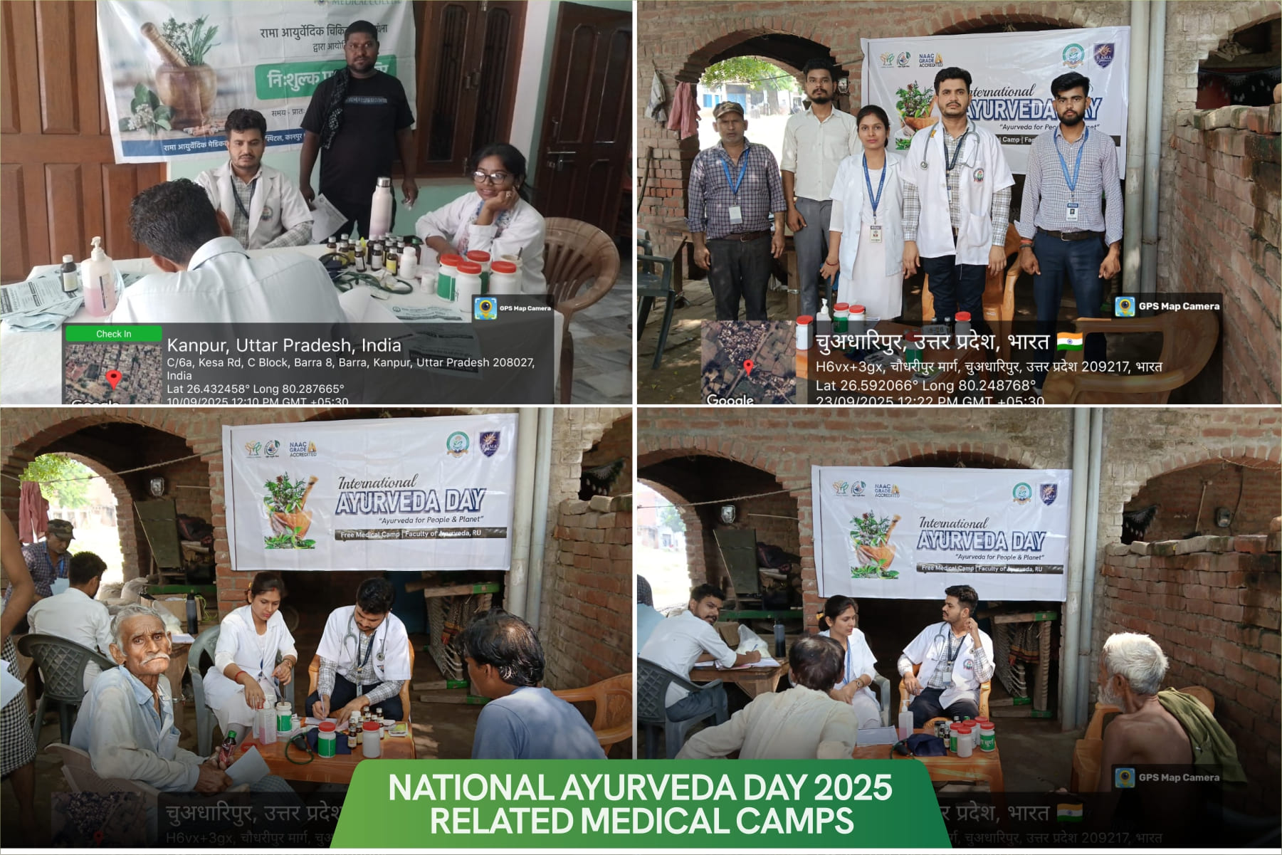 The camps were conducted under the supervision of Dr. Dhananjay Singh, Medical Officer, Rama Ayurvedic Medical College & Hospital, Mandhana, Kanpur. He, along with a dedicated team, provided Ayurvedic consultations, free health check-ups, and awareness sessions on lifestyle management based on Ayurvedic principles.