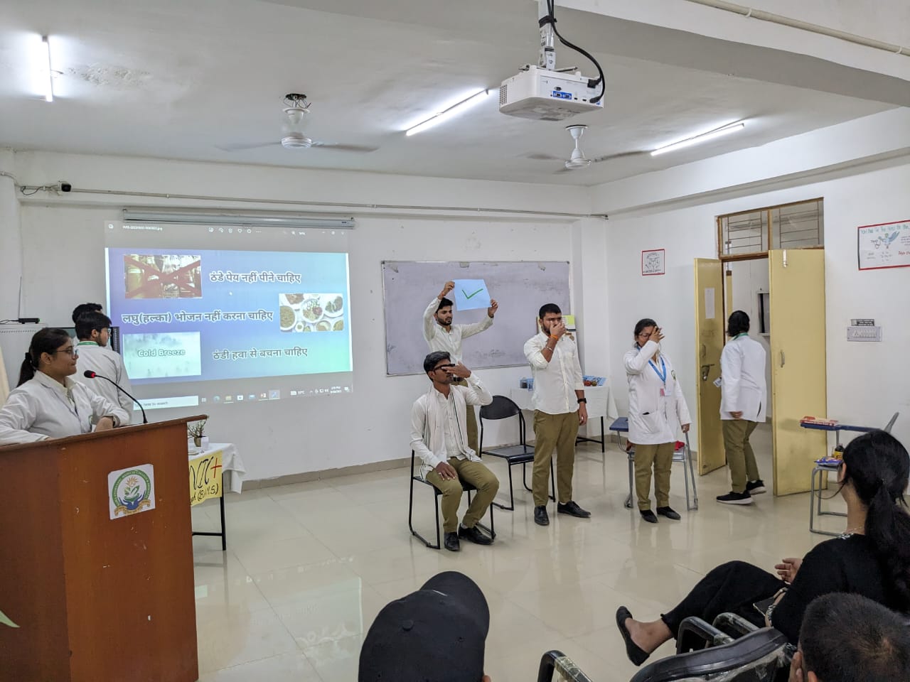Ayurveda, which has been practiced for thousands of years, focuses on the balance of three doshas: Vata, Pitta, and Kapha. The students highlighted the importance of maintaining a natural lifestyle and the role of diet and herbs in promoting well-being. They also discussed how the imbalance of doshas, known as Dosha Gati, can lead to various diseases, and explained the concepts of Vriddhi (increase) and Kshaya (decrease) of doshas.